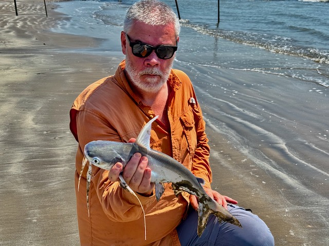 The morning kicked off with Bret casting lures into the surf, looking for something different. It wasn’t different. It was gaftop (Bagre marinus)—again. But for whatever reason, they were smashing topwater, and for a few casts, it was actually kind of fun. Messy, loud, and completely absurd.