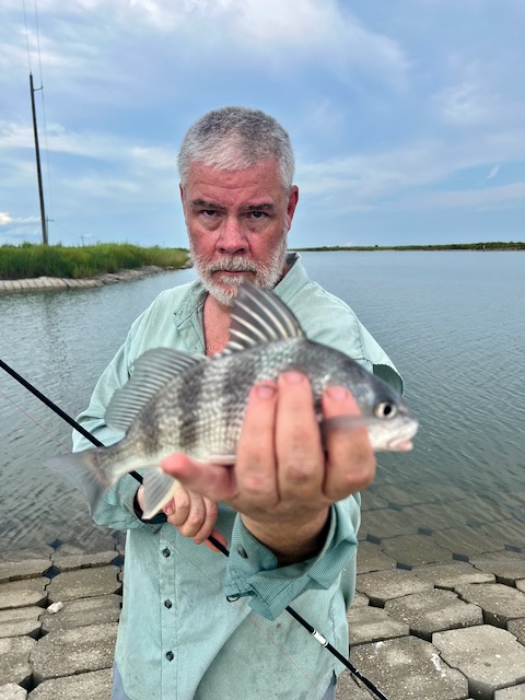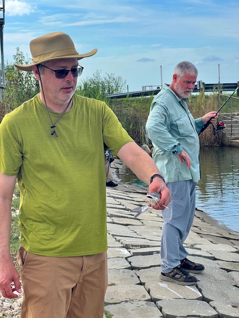 They reached a little spillway where everything—marsh, ditches, and tide—funnels into one tight outlet. When the water moves, it’s a fish magnet. But the tide wasn’t right.