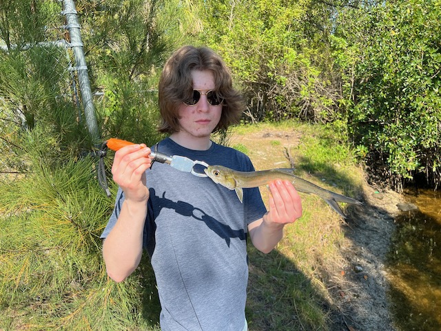 Luke and Bret each picked up a surprise ladyfish (Elops saurus) in a ditch we didn’t even realize had salt in it. Because of course it did. It’s Florida—everything is brackish, especially the rules.