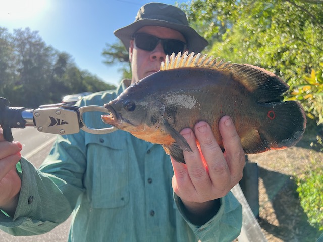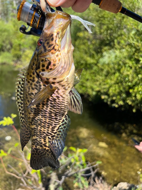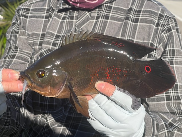 Dave closed strong with a perfect Oscar (Astronotus ocellatus)—the same fish you used to stare at in your dentist’s office as a kid, now eating jigs under a stretch of mangroves like it belonged there..