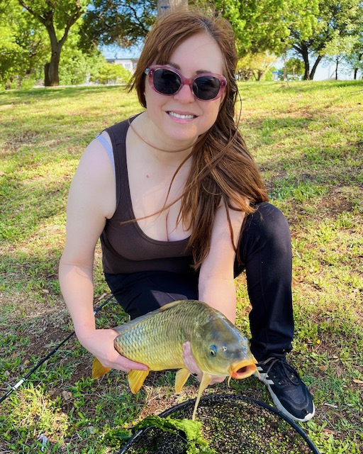 Armed with spinning rods and 3000 series KastKing baitfeeder reels, they slung bait into water so bird-slick it practically quacked. Denise kept it old-school and effective—corn for Rung 1bread for Rung 2—and stuck two common carp (Cyprinus carpio) like it was a backyard clinic.