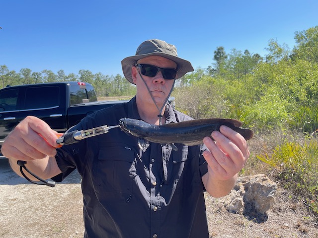 Then, out of nowhere, Bret stuck a walking catfish (Clarias batrachus)—because of course he did. A literal invasive air-breather showed up like it got lost on its way to a roadside puddle. The only thing missing was a soundtrack cue.