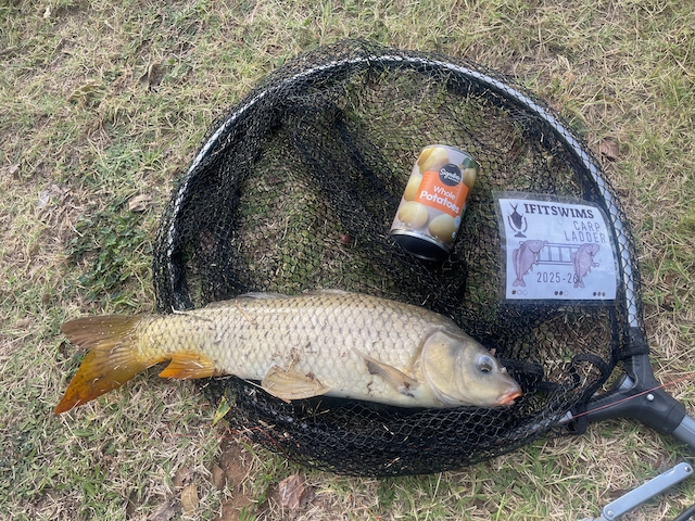 Dave makes rung 4 with a nice sized carp on Garbanzo bean.