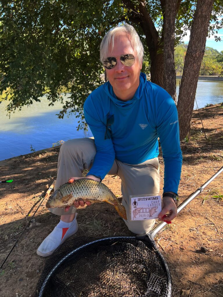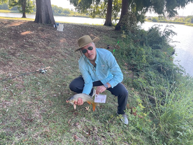 Dave S is on the board! A chunky carp on the float from a pond in Austin,TX.
